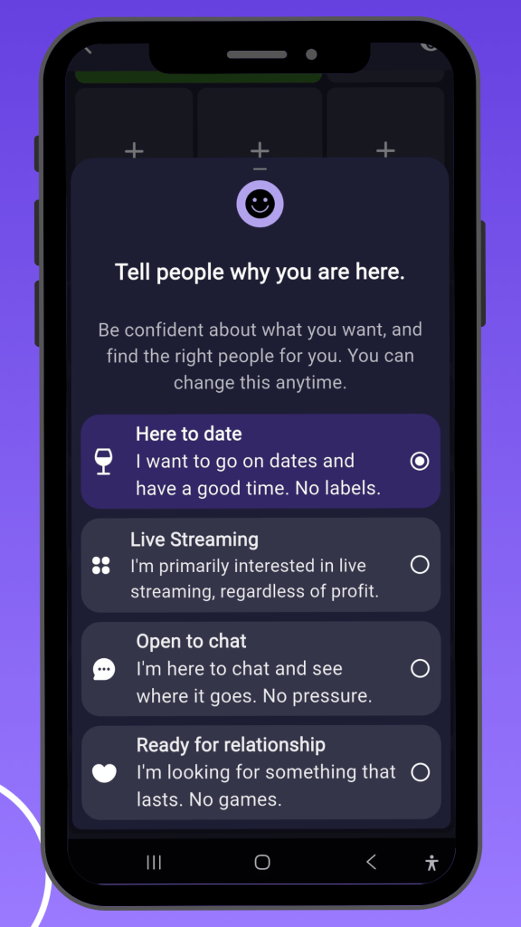 Only the people you match or interact with can see the information you choose to share. Your privacy is our priority — you stay in full control of your photos, details, and visibility settings at all times.
